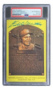 Eddie Mathews Signed 4x6 Milwaukee Braves HOF Plaque Card PSA/DNA 85025798