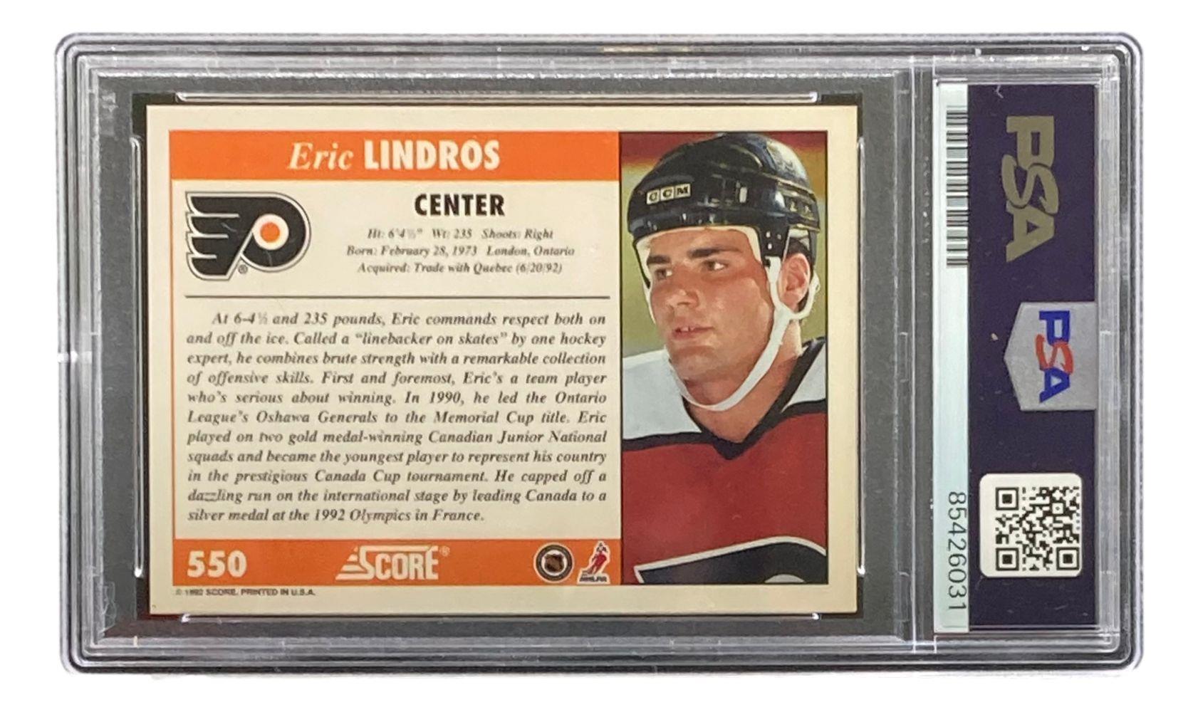 Eric Lindros Signed 1992 Score #550 Philadelphia Flyers Rookie Card PSA