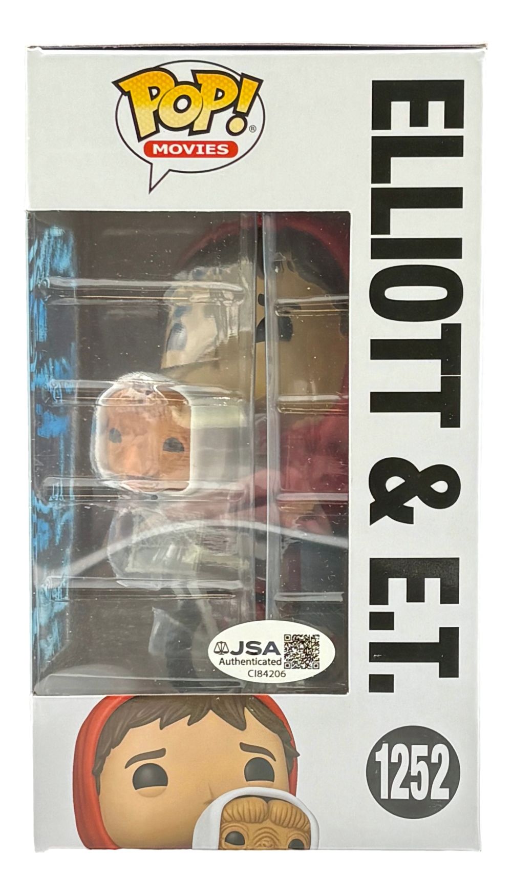 Featured is a Henry Thomas, Matthew De Merritt, Robert MacNaughton, and Dee Wallace signed ET Funko Pop #1252. This pop has been hand signed and comes with the JSA hologram and certificate of authenticity. This pop would make a great addition to any sports memorabilia collection!