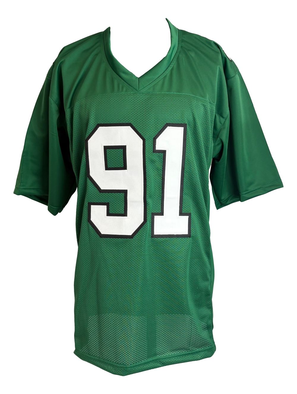 Featured is a Fletcher Cox igned custom football jersey. This jersey has been hand signed by Cox and comes with the JSA hologram. This jersey features professionally sewn letters and numbers and is size XL. This jersey has no team tags or emblems and is intended as a sports collectible. This jersey would make a great addition to any sports memorabilia collection..