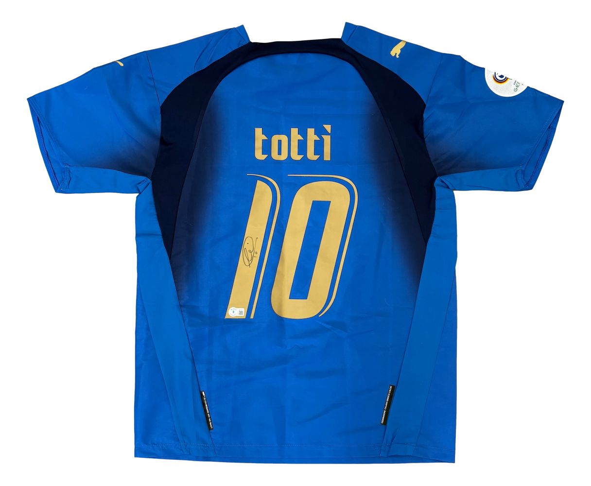 Featured is a Francesco Totti signed Italy Puma soccer jersey. This jersey has been hand signed by Totti and comes with the Beckett hologram and certificate of authenticity. Jersey size may vary. This jersey would make a great addition to any sports memorabilia collection!.