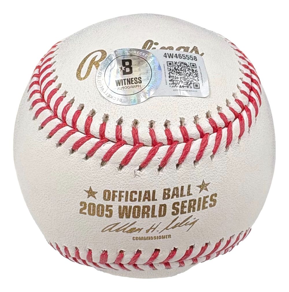 Featured is a Frank Thomas signed Rawlings official 2005 World Series baseball. This ball has been hand signed by Thomas and comes with the Beckett hologram and certificate of authenticity. This ball would make a great addition to any sports memorabilia collection!.