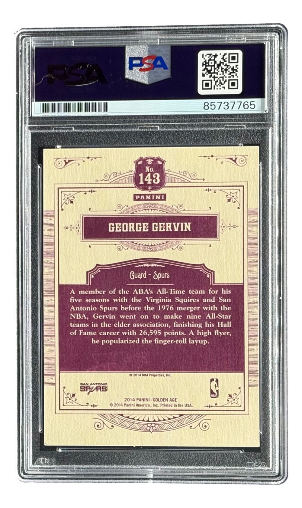 Featured is a George Gervin signed 2014 Panini Golden Age #143 trading card. This card has been hand signed by Gervin and has been authenticated and encapsulated by PSA. This card would make a great addition to any sports memorabilia collection!. **Stock image used.**