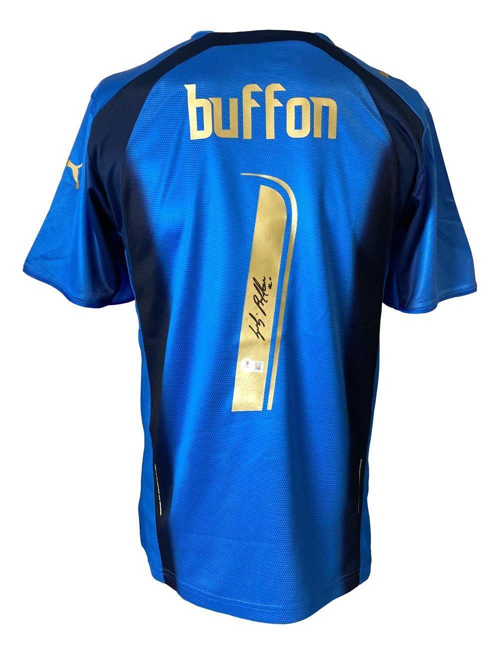 Featured is a Gianluigi Buffon signed Italy Puma soccer jersey. This jersey was hand signed by Buffon and comes with the Beckett hologram and certificate of authenticity. Jersey size may vary. This jersey would make a great addition to any sports memorabilia collection!
