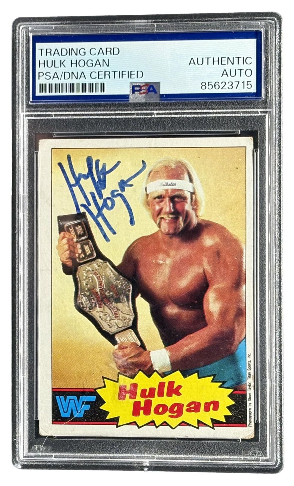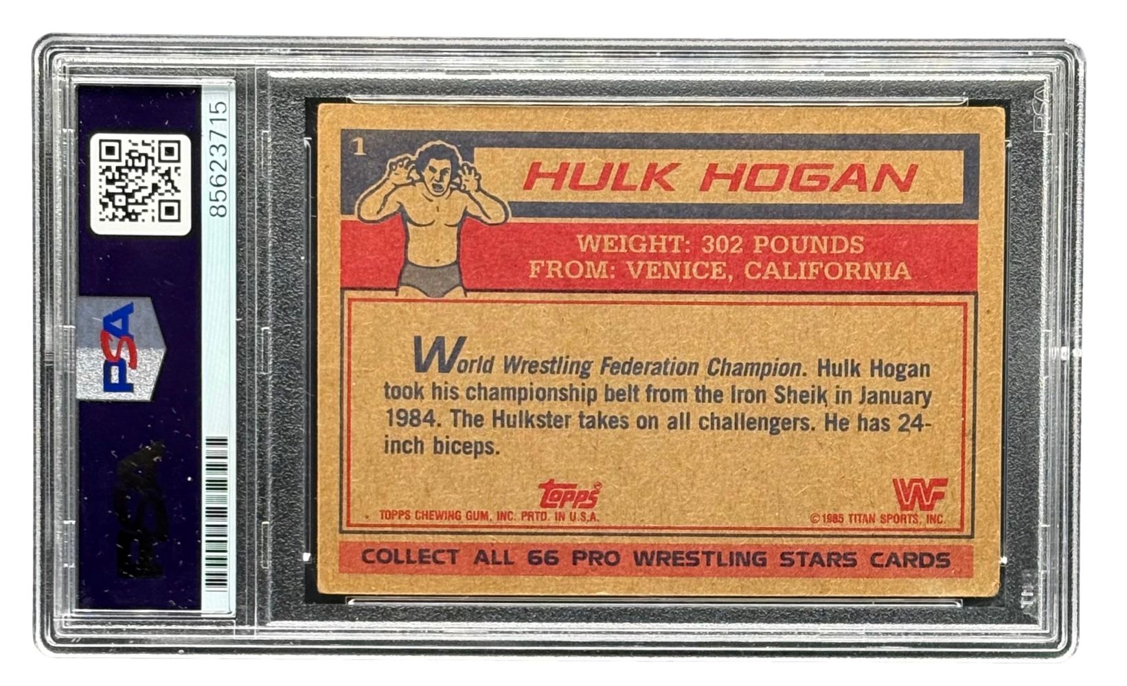 Hulk Hogan Signed 1985 Topps #1 WWF WWE Rookie Card 2 PSA