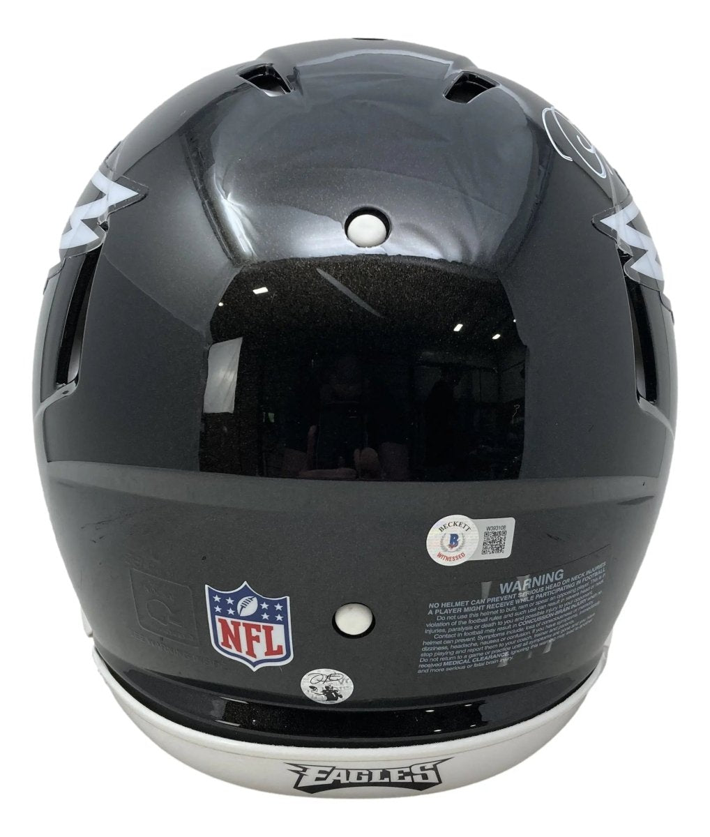 Featured is a Jalen Hurts signed Philadelphia Eagles full size Alt black speed authentic helmet. This helmet was hand signed by Jalen Hurts in the presence of a Beckett authentication representative. Included with the helmet is a Beckett witnessed hologram and certificate of authenticity along with that come a Hurts exclusive hologram. This item would make a great addition to any sports memorabilia collection!..