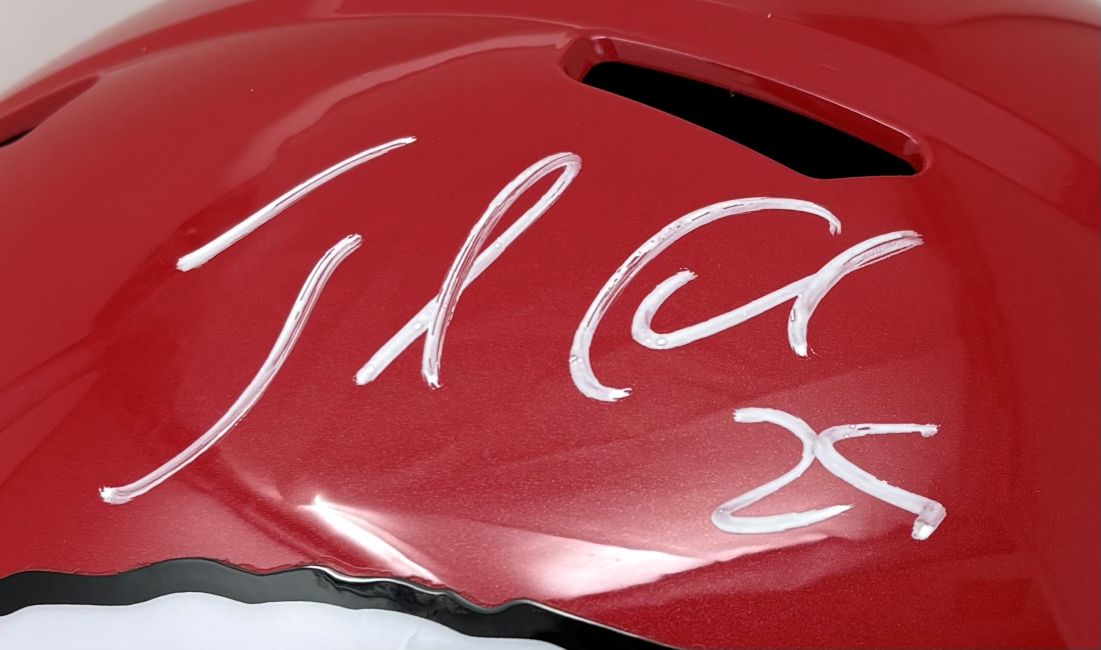 Featured is a Jamal Charles signed Kansas City Chiefs full size replica speed helmet. This helmet has been hand signed by Charles and comes with the Beckett hologram and certificate of authenticity. This helmet would make a great addition to any sports memorabilia collection!.