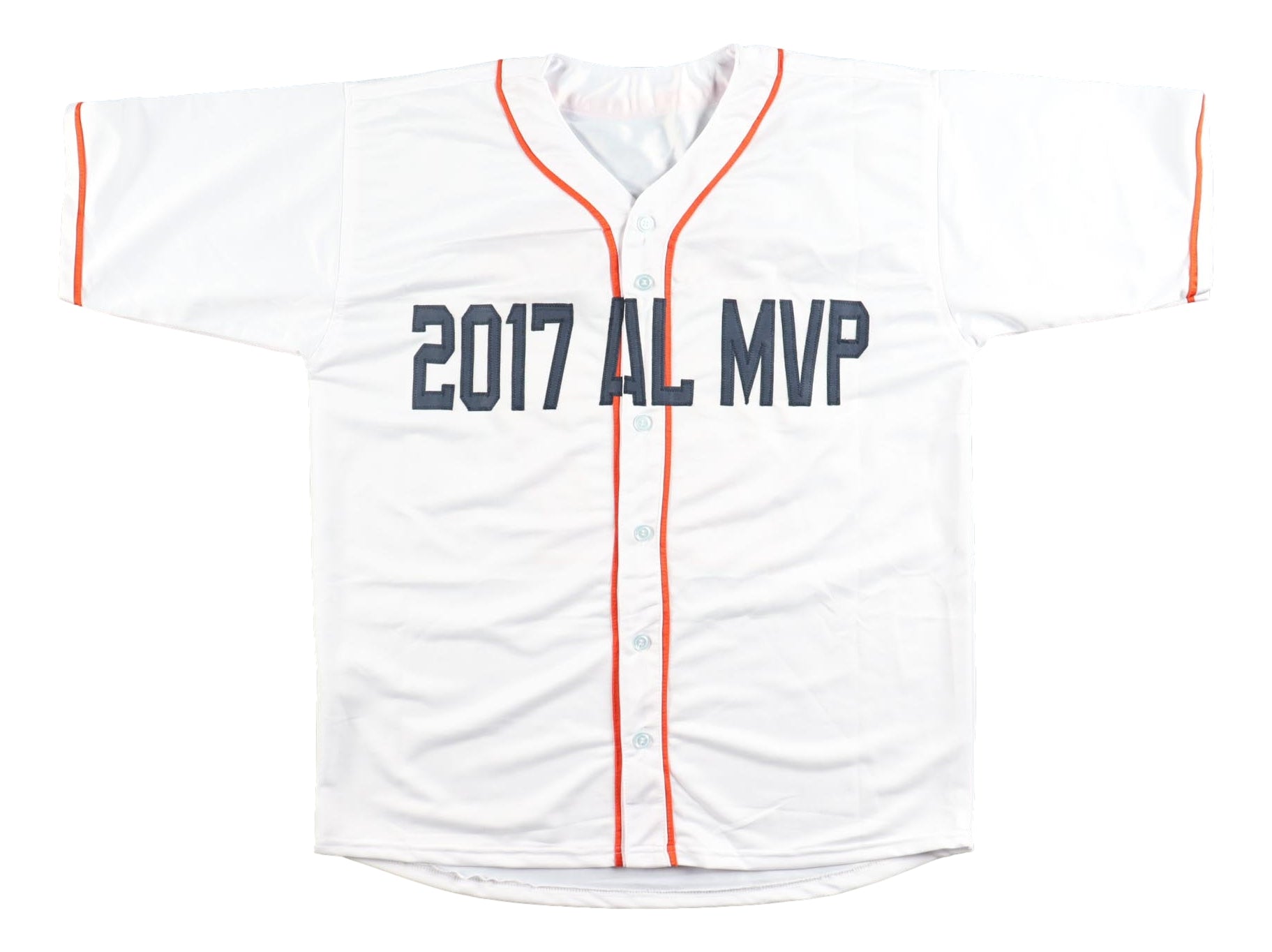 Featured is a Jose Altuve signed custom baseball jersey. This jersey has been hand signed by Altuve and comes with the JSA hologram and certificate of authenticity. This jersey features professionally sewn letters and numbers and is size XL. This jersey has no team tags or emblems and is intended as a sports collectible. This jersey would make a great addition to any sports memorabilia collection!.