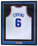 Julius Dr J Erving Philadelphia Signed Framed White Basketball Jersey JSA