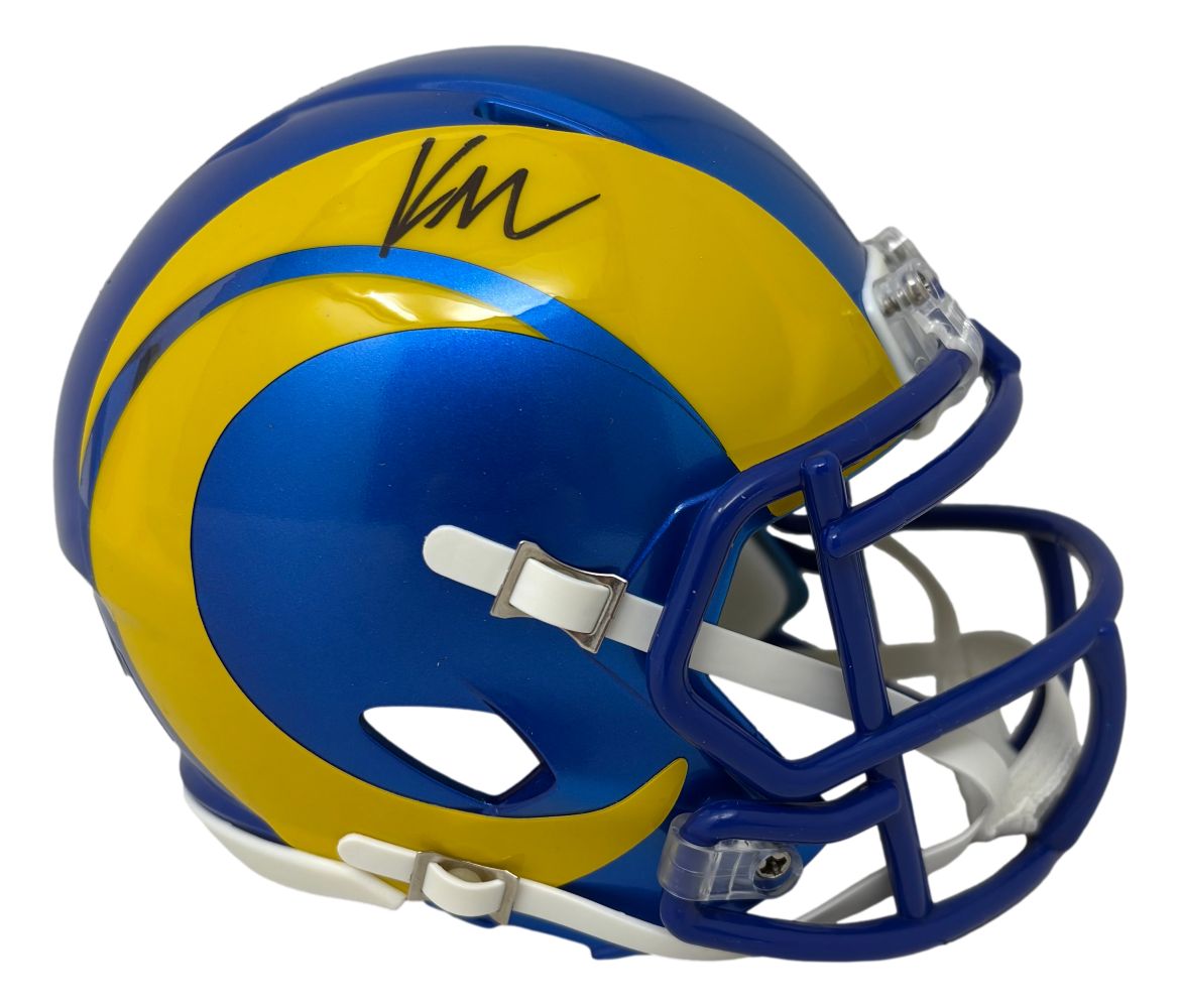 Featured is a Kyren Williams signed Los Angeles Rams mini speed helmet. This helmet has been hand signed by Williams and comes with the Beckett hologram and certificate of authenticity. This helmet would make a great addition to any sports memorabilia collection!.