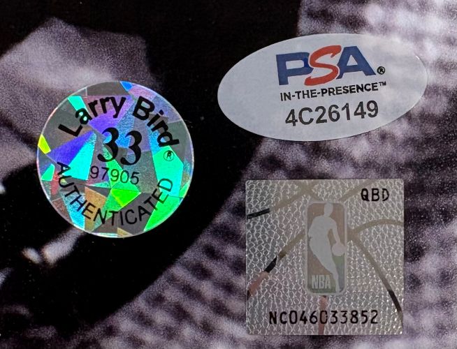 Featured is a Larry Bird signed 16x20 Boston Celtics photo. This photo has been hand signed by Bird and comes with the PSA/DNA witnessed hologram, along with the Bird exclusive hologram. This photo would make a great addition to any sports memorabilia collection!.