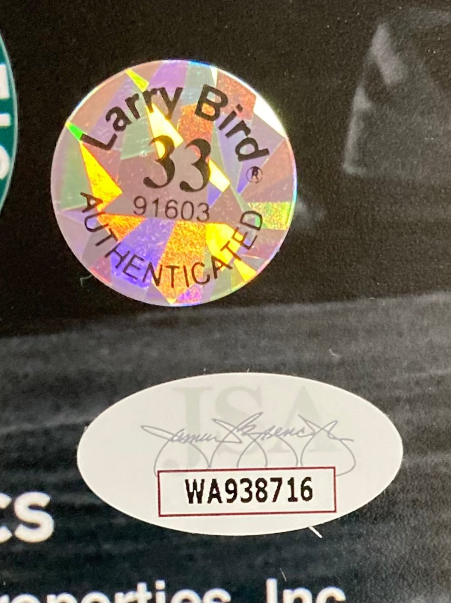 Featured is a Larry Bird signed 16x20 photo. This photo has been hand signed by Bird and comes with the JSA witnessed hologram and certificate of authenticity, along with the Bird exclusive hologram. This photo would make a great addition to any sports memorabilia collection!