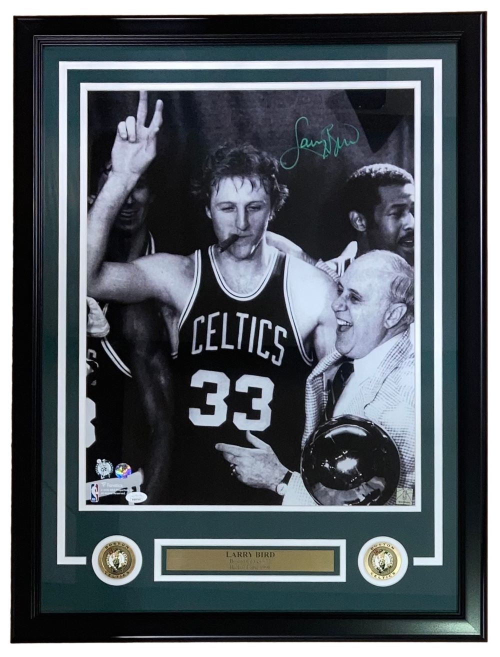 Featured is a Larry Bird signed 16x20 photo. This photo has been hand signed by Bird and comes with the JSA witnessed hologram and certificate of authenticity, along with the Bird exclusive hologram. This photo has been professionally framed and matted and is approximately 22x29. This photo would make a great addition to any sports memorabilia collection!.