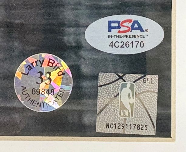 Featured is a Larry Bird signed 16x20 Boston Celtics photo. This photo has been hand signed by Bird and comes with the PSA/DNA witnessed hologram, along with the Bird exclusive hologram. This photo has been professionally framed and matted and is approximately 22x27. This photo would make a great addition to any sports memorabilia collection!.