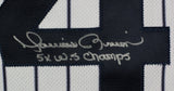 Featured is a Mariano Rivera signed New York Yankees Majestic authentic baseball jersey, in which he added the "5x W.S. Champs" inscription. This jersey was hand signed by Mariano Rivera and authenticated by JSA authentication services. Included with the jersey is a JSA hologram and certificate of authenticity. This jersey would make a great addition to any sports memorabilia collection..
