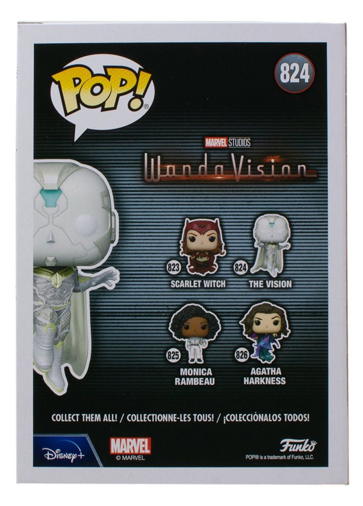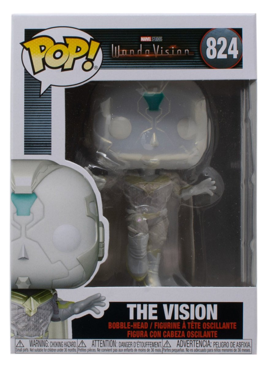 Marvel Wanda Vision The Vision Funko Pop! vinyl figure #824 measures approximately 3 3/4-inches tall. Comes packaged in a window display box..