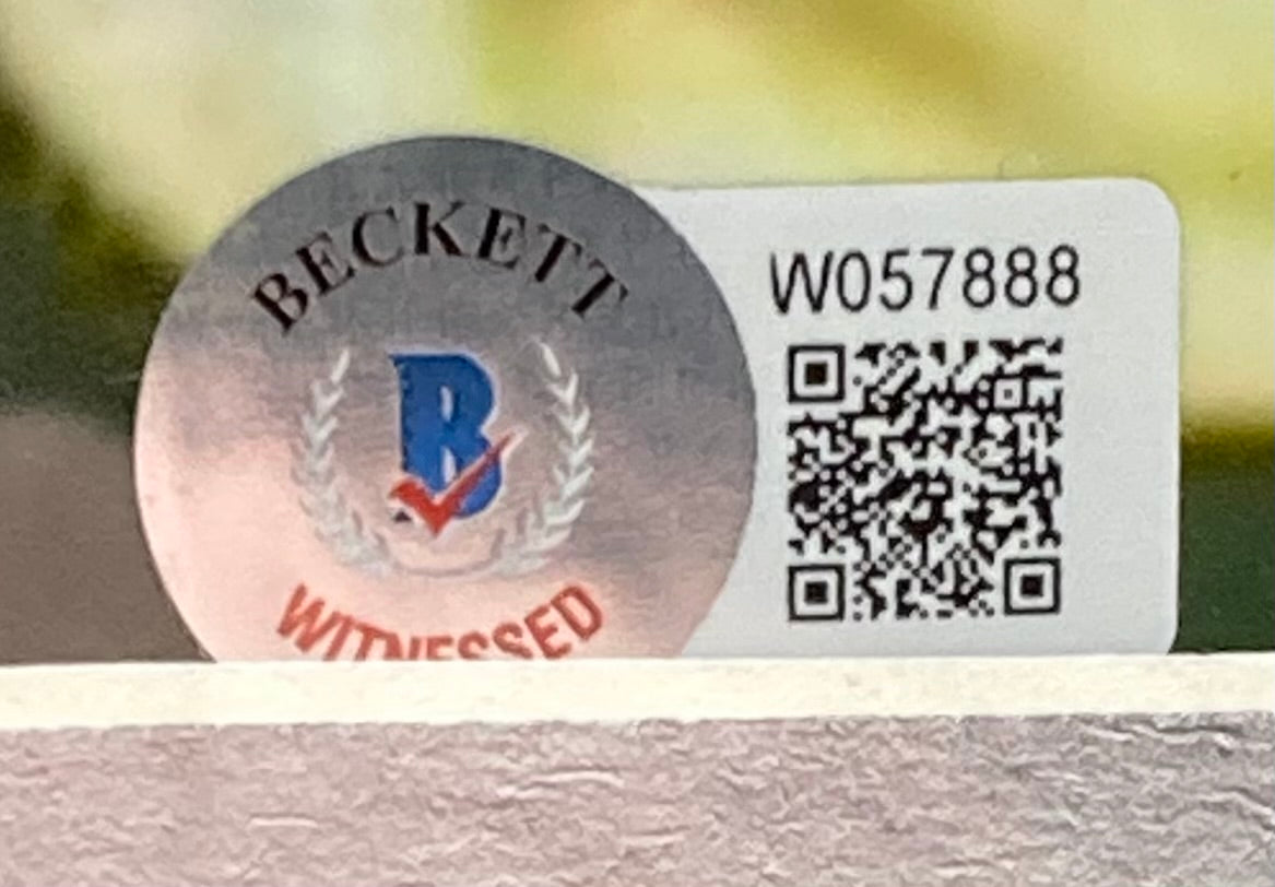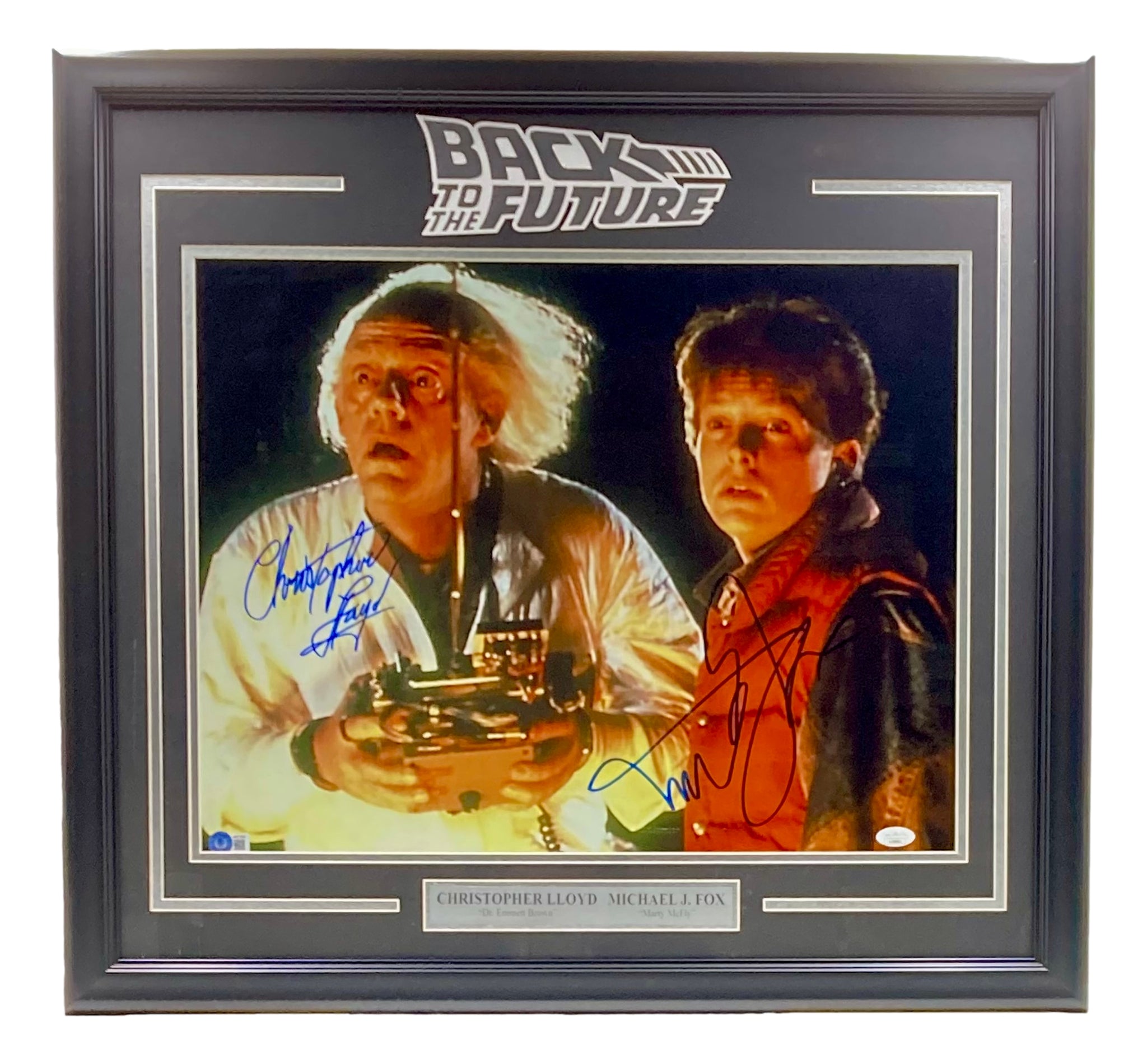Featured is a Michael J. Fox and Christopher Lloyd signed 16x20 Back To The Future photo. This photo was hand signed by Michael J. Fox and Christopher Lloyd and comes with the Beckett (Fox) and JSA (Lloyd) hologram and certificate of authentications. This photo has been professionally framed and matted and is approximately 24x30..