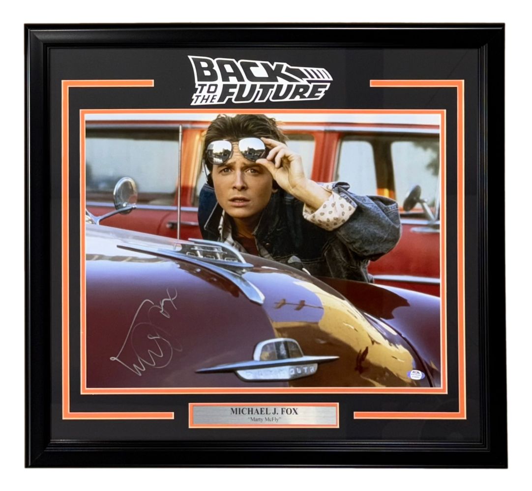 Featured is a Michael J. Fox signed 16x20 Back to the Future photo. This photo has been hand signed by Fox and comes with the PSA witnessed hologram. This photo has been professionally framed and matted and is approximately 24x30. This photo would make a great addition to any entertainment memorabilia collection!.
