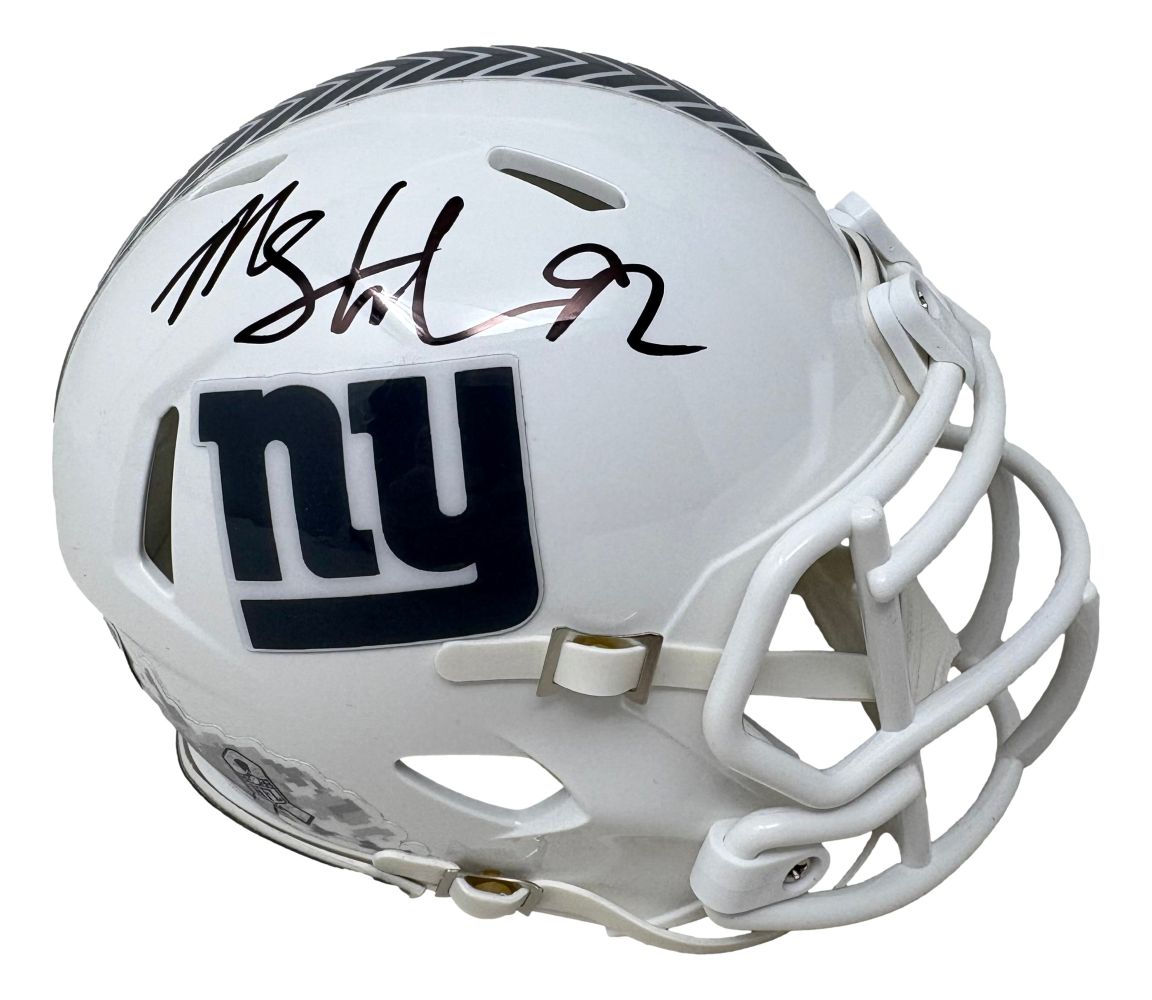 Featured is a Michael Strahan signed New York Giants mini speed helmet. This helmet has been hand signed by Strahan and comes with the Beckett hologram and certificate of authenticity. This helmet would make a great addition to any sports memorabilia collection!