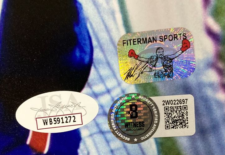 Featured is a Mike Tyson, Doc Gooden and Darryl Strawberry signed 16x20 photo. This photo has been hand signed by Tyson, Gooden and Strawberry and comes with the JSA witnessed hologram and certificate of authenticity (for Tyson), along with the Beckett hologram and certificate of authenticity (for Gooden and Strawberry). This photo would make a great addition to any sports memorabilia collection!.