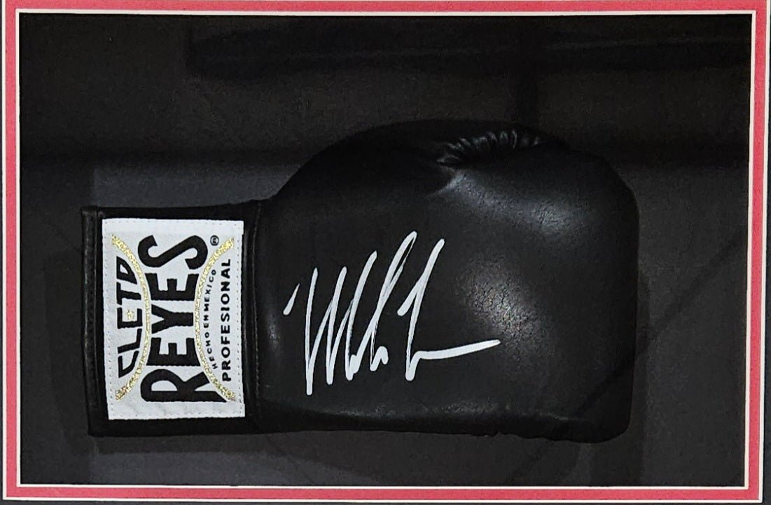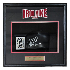 Featured is a Mike Tyson signed Cleto Reyes boxing glove. This glove has been hand signed by Tyson and comes with the JSA hologram and certificate of authenticity. This glove has been professionally framed in a shadow box and is approximately 18x19x4. This glove would make a great addition to any sports memorabilia collection!.