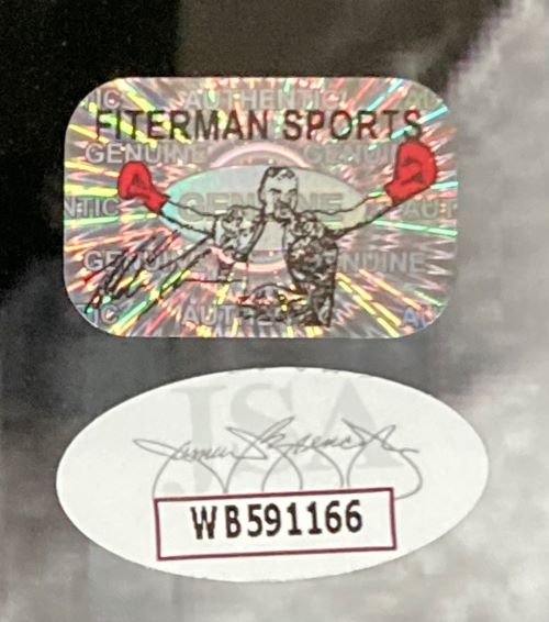 Featured is a Mike Tyson signed 16x20 photo. This photo has been hand signed by Tyson and comes with the JSA hologram and certificate of authenticity. This photo has been professionally framed and matted and is approximately 22x27. This photo would make a great addition to any sports memorabilia collection..