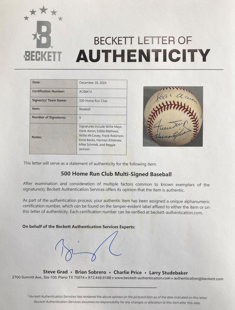 MLB 500 Hank Aaron Willie Mays & More Signed Home Run Club (9) NL Baseball BAS