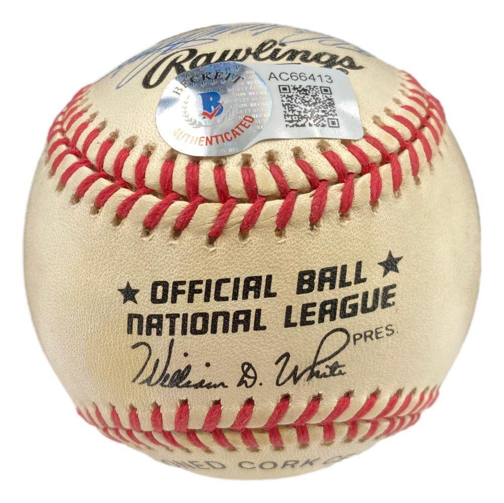 Featured is a Willie Mays, Hank Aaron, Eddie Mathews, Willie McCovey, Frank Robinson, Ernie Banks, Harmon Killebrew, Mike Schmidt, and Reggie Jackson signed official National League baseball. This ball comes with the Beckett hologram and letter of authenticity. This ball would make a great addition to any sports memorabilia collection!.