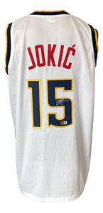 Featured is a Nikola Jokic signed custom basketball jersey. This jersey has been hand signed by Jokic and comes with the Beckett hologram and certificate of authenticity. This jersey features professionally sewn letters and numbers and is size XL. This jersey has no team tags or emblems and is intended as a sports collectible. This jersey would make a great addition to any sports memorabilia collection!