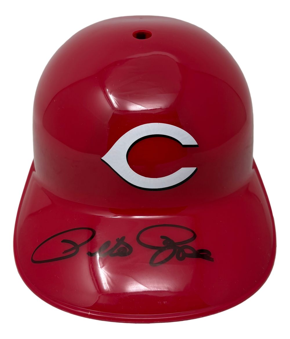 Featured is a Pete Rose signed Cincinnati Reds full size replica batting helmet. This helmet has been hand signed by Rose and comes with the PSA/DNA hologram. This helmet would make a great addition to any sports memorabilia collection!.
