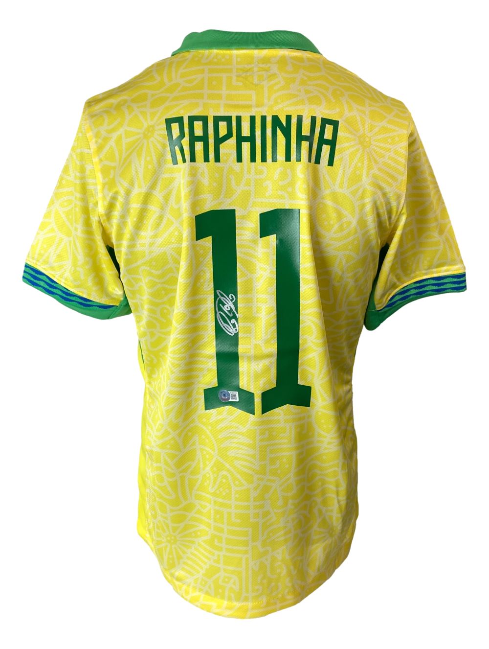 Featured is a Raphina signed Brazil Nike soccer jersey. This jersey was hand signed by Raphina and comes with the Beckett hologram and certificate of authenticity. Jersey size may vary. This jersey would make a great addition to any sports memorabilia collection!.