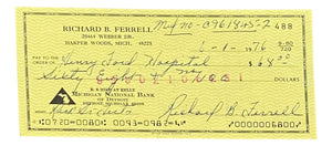 Featured is a Rick Ferrell Boston Red Sox signed bank check. This check has been hand signed by Ferrell and comes with the Beckett hologram and certificate of authenticity. This check would make a great addition to any sports memorabilia collection!.
