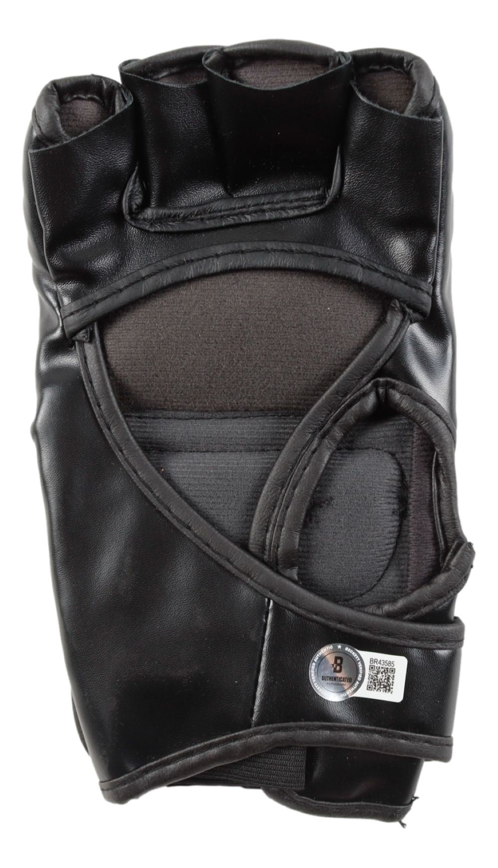 Featured is a Royce Gracie signed MMA fight glove, inscribed "HOF 03". This glove has been hand signed by Gracie and comes with the Beckett hologram and certificate of authenticity. This glove would make a great addition to any sports memorabilia collection!.