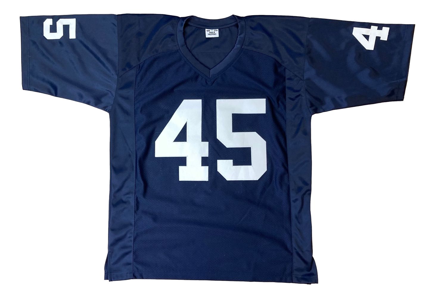 Featured is a Rudy Ruettiger signed custom football jersey. This jersey has been hand signed by Ruettiger and comes with the Beckett hologram and certificate of authenticity. This jersey features professionally sewn letters and numbers and is size XL. This jersey has no team tags or emblems and is intended as a sports collectible. This jersey would make a great addition to any sports memorabilia collection!.