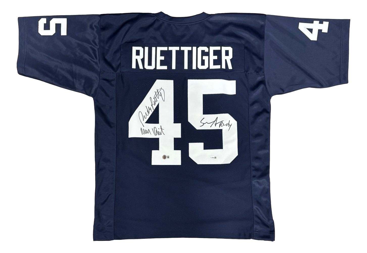 Rudy Ruettiger Sean Astin Notre Dame Signed Blue Jersey Never Quit BAS+JSA