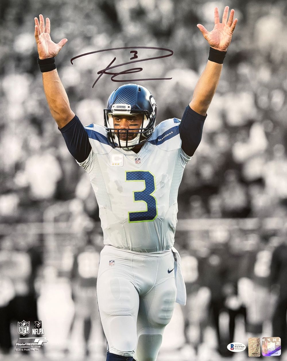Featured is a Russell Wilson signed 16x20 Seattle Seahawks photo. This photo has been hand signed by Wilson and comes with the Beckett hologram and certificate of authenticity. This photo would make a great addition to any sports memorabilia collection!