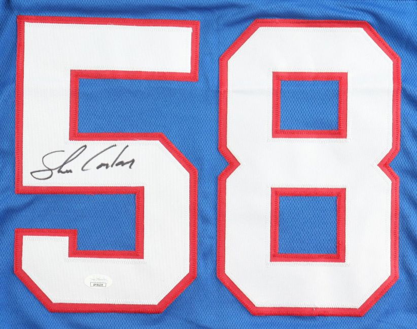 Featured is a Shane Conlan signed custom football jersey. This jersey has been hand signed by Conlan and comes with the JSA hologram. This jersey features professionally sewn letters and numbers and is size XL. This jersey has no team tags or emblems and is intended as a sports collectible. This jersey would make a great addition to any sports memorabilia collection!.