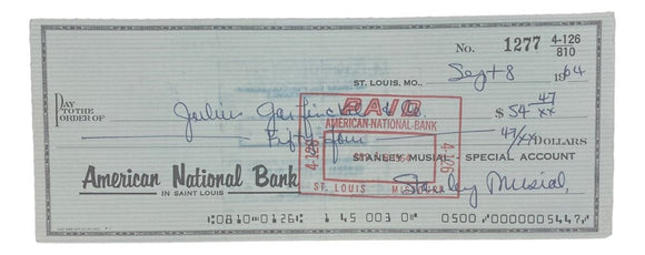 Stan Musial St. Louis Cardinals Signed Bank Check #1277 BAS
