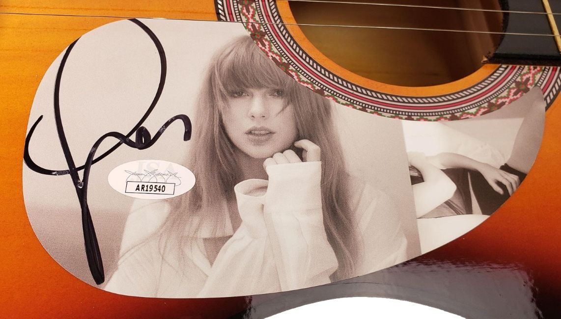 Featured is an T Swift signed 38" acoustic guitar. This guitar has been hand signed by Swift and comes with the JSA hologram and certificate of authenticity. This guitar would make a great addition to any entertainment memorabilia collection!