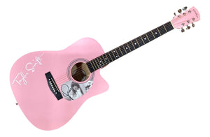 Featured is an T Swift signed 41" acoustic guitar. This guitar has been hand signed by Swift and comes with the PSA hologram. This guitar would make a great addition to any entertainment memorabilia collection! **Please note: Stock image used. Signature position may vary.**.