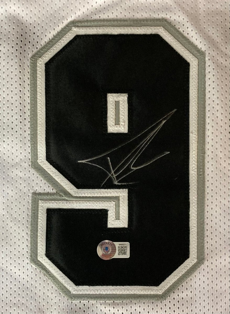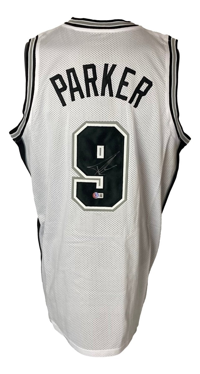 Featured is a Tony Parker signed custom basketball jersey. This jersey has been hand signed by Parker and comes with the Beckett witnessed hologram and certificate of authenticity. This jersey features professionally sewn letters and numbers and is size XL. This jersey has no team tags or emblems and is intended as a sports collectible..