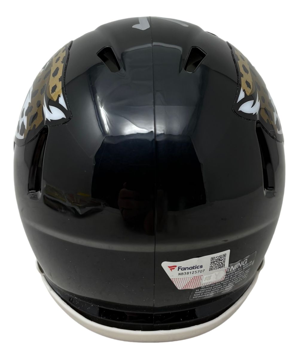 Featured is a Trevor Lawrence signed Jacksonville Jaguars mini speed helmet. This helmet has been hand signed by Lawrence and comes with the Fanatics hologram and certificate of authenticity. This helmet would make a great addition to any sports memorabilia collection!.