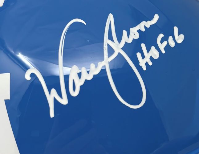 Featured is a Warren Moon signed Houston Oilers full size replica speed helmet, inscribed "HOF 06". This helmet has been hand signed by Moon and comes with the Beckett witnessed hologram and certificate of authenticity. This helmet would make a great addition to any sports memorabilia collection!.