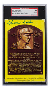 Warren Spahn Signed Slabbed Milwaukee Braves Hall of Fame Plaque Postcard SGC