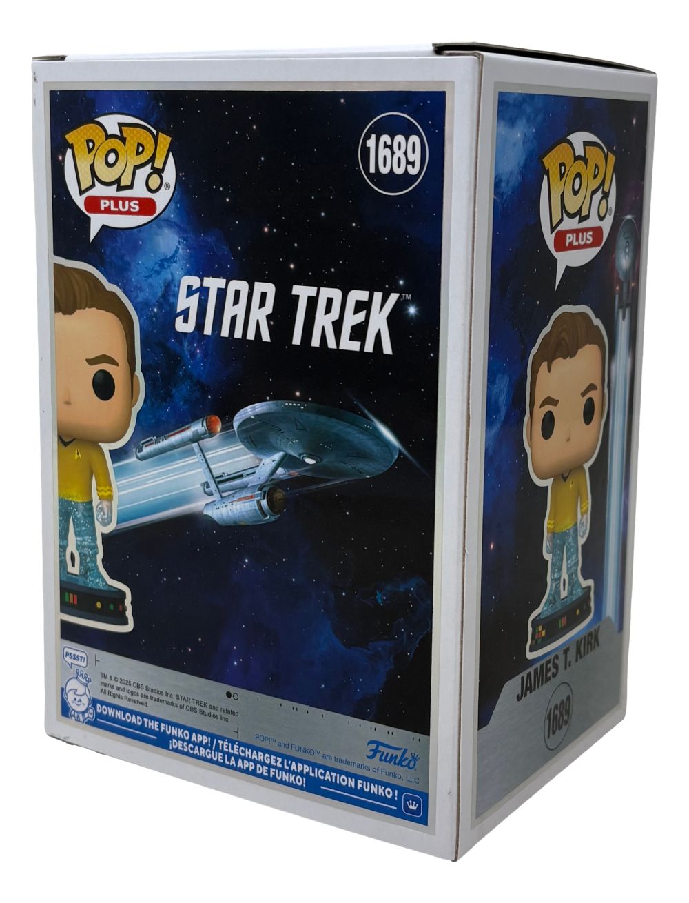 Featured is a William Shatner signed Star Trek James T. Kirk Funko Pop #1689. This pop has been hand signed by Shatner and comes with the JSA QR hologram. This pop would make a great addition to any entertainment memorabilia collection!
