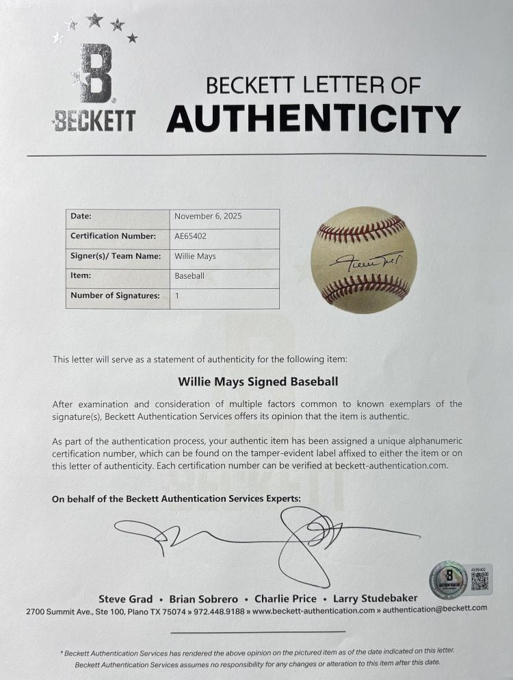 Willie Mays San Francisco Giants Signed Official NL Baseball BAS AE65403