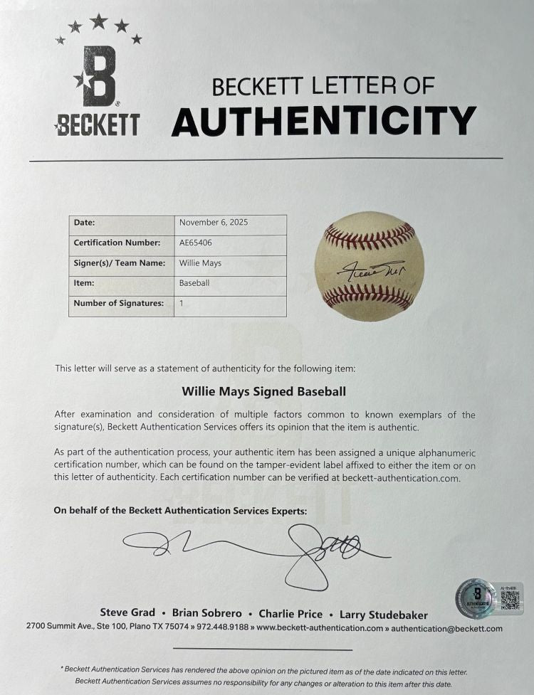 Willie Mays San Francisco Giants Signed Official NL Baseball BAS AE65406