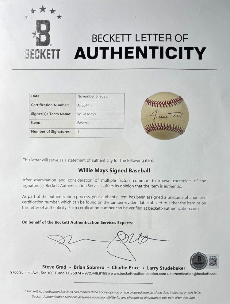 Willie Mays San Francisco Giants Signed Official NL Baseball BAS AE65416