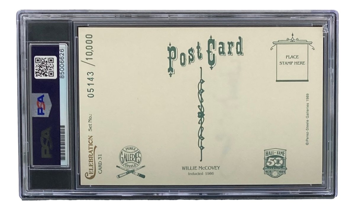 Featured is a Willie McCovey San Francisco Giants signed Perez-Steele postcard. This card has been hand signed by McCovey and has been authenticated and encapsulated by PSA, receiving a Gem MT 10 autograph grade. This card would make a great addition to any sports memorabilia collection!.